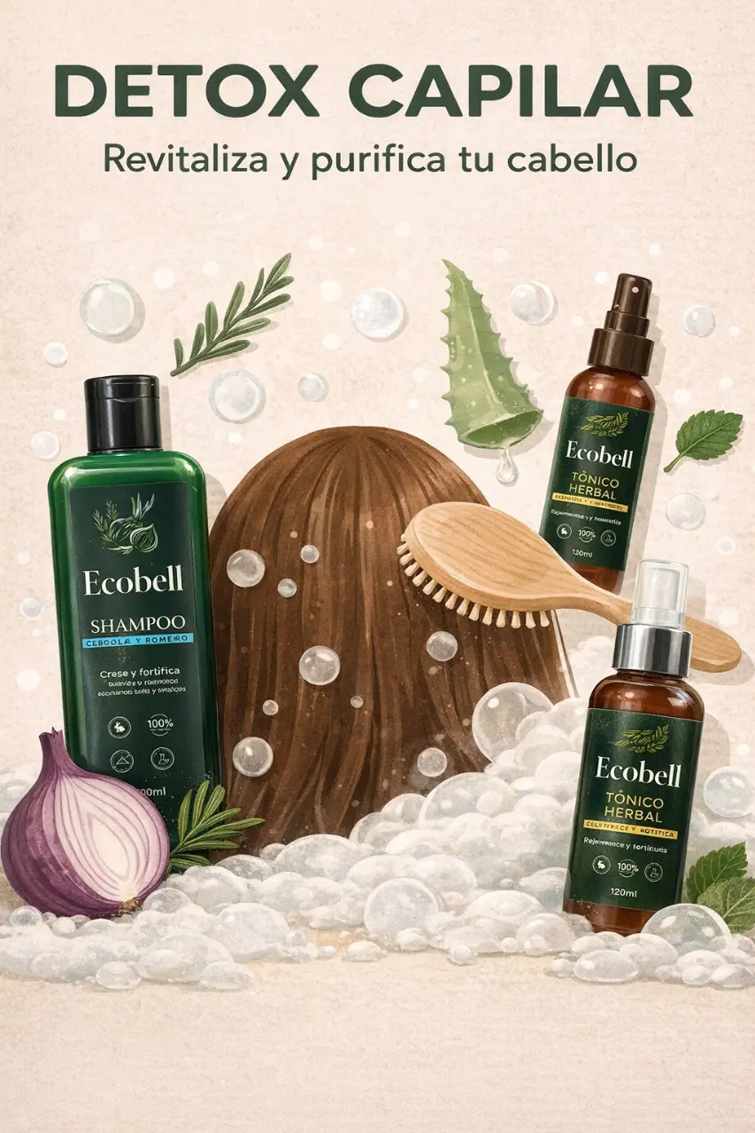 El romero es un potente estimulante natural del cuero cabelludo. Su acción mejora el flujo sanguíneo, promoviendo el crecimiento y dando fuerza desde la raíz. En Ecobell lo combinamos con la cebolla para potenciar resultados visibles.